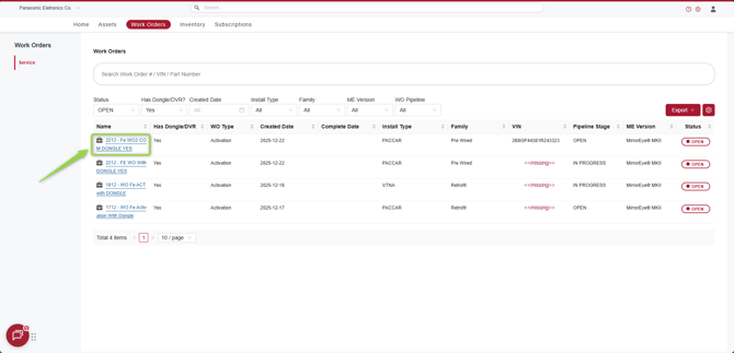 STEP 01: Select an open Work Order for your installation type (with or without a DVR/Dongle)