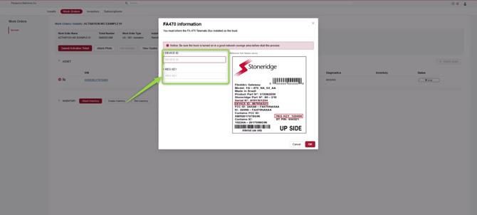 - Enter the FA470 Device ID and Reg Key example in image shown. Then select OK.