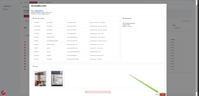 Confirm all components installed are listed in the inventory list and select the "Submit Activation Ticket".
