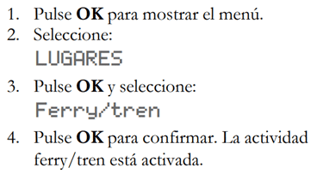 • Una vez que haya estacionado, pulse DESCANSO y luego active FERRY/TREN, como puede ver en la imagen a continuación:
