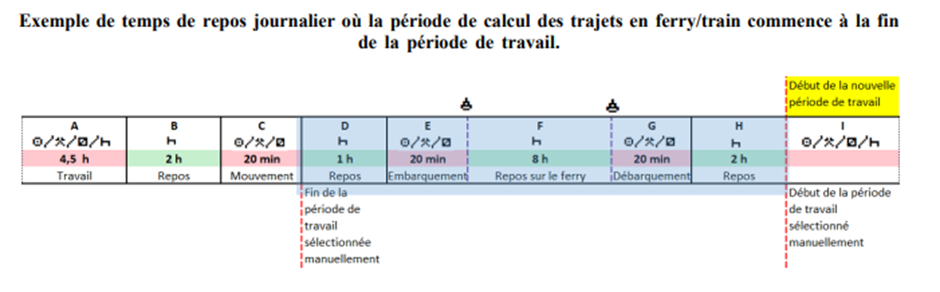 - Après avoir débarqué, débutez votre nouvelle période de travail ou si nécessaire, trouvez un emplacement pour terminer votre repos quotidien.